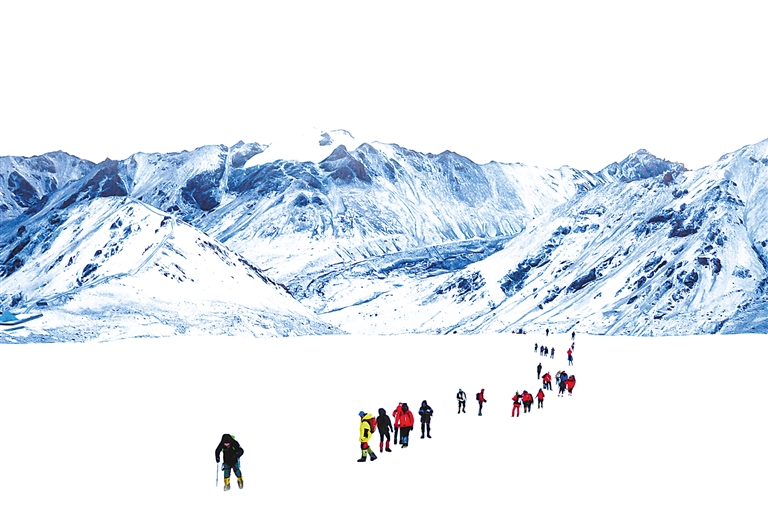 图为清晨,登山爱好者从雪线出发。记者 阿旺尼玛 贡曲罗杰 摄