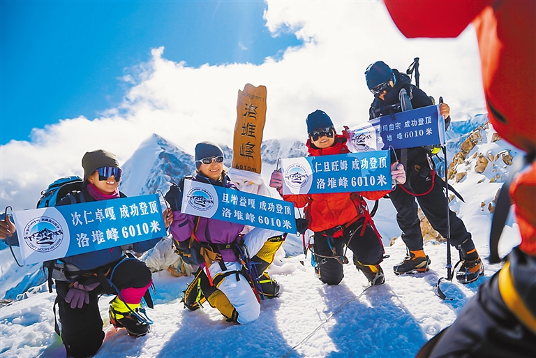 图为登山爱好者成功登顶洛堆峰。记者 阿旺尼玛 贡曲罗杰 摄