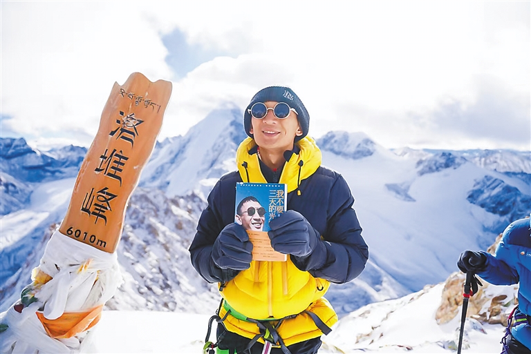 图为盲人励志演说家尼玛旺堆成功登顶洛堆峰。记者 阿旺尼玛 贡曲罗杰 摄