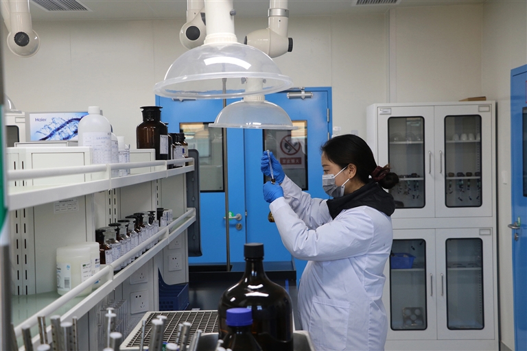 工作人员在进行药品质检工作。图由记者 次仁罗布 摄
