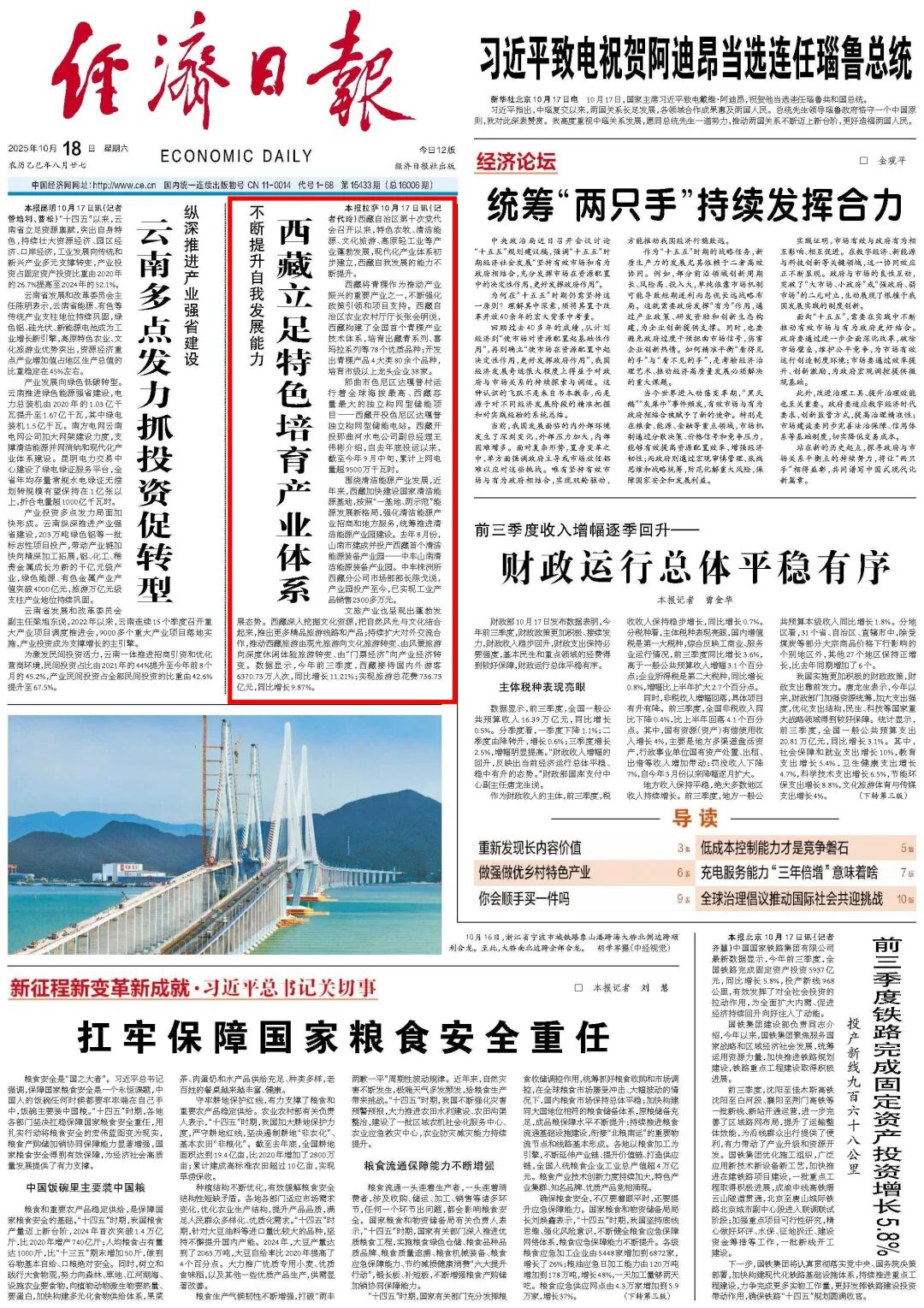 《经济日报》头版刊发文章