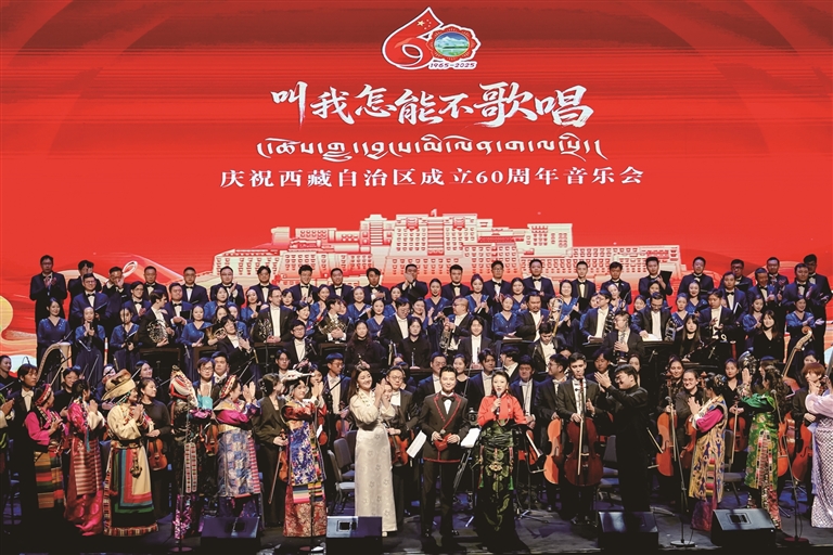 商报讯(记者 张雪芳)10月17日晚,为隆重庆祝西藏自治区成立60周年,由中国文学艺术界联合会、中国音乐家协会指导,中共西藏自治区委员会宣传部、西藏自治区文化和旅游厅主办,西藏演艺有限公司承办的大型主题音乐会《叫我怎能不歌唱》在北京喜剧院震撼上演。无锡交响乐团与中央音乐学院合唱团联袂担纲音乐会演奏与合唱,为首都观众奉献了一场凝聚深情、展现辉煌的艺术盛典。