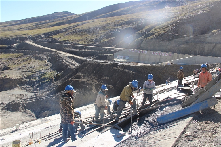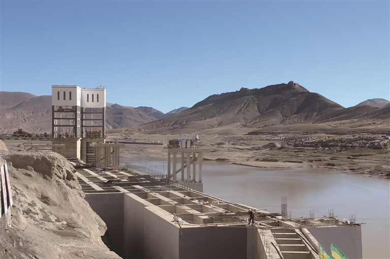 拉洛工程鱼道及泄洪洞进水塔形象面貌。
