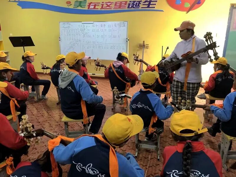 图为乡村学校少年宫开设乐器课堂。