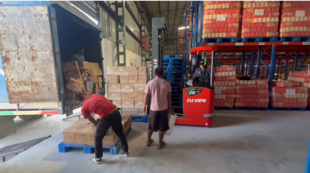 图为尼泊尔拉萨海外仓卸货。