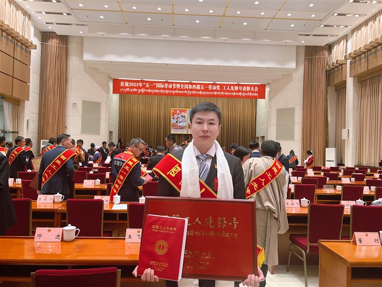 韩兴昊代表科研团队接受西藏自治区总工会表彰。