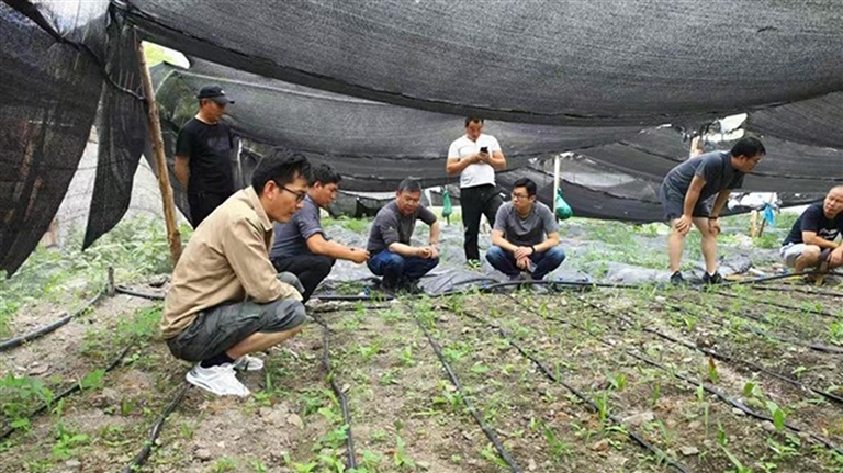 韩兴昊为当地农户提供药材种植咨询服务。图由韩兴昊提供