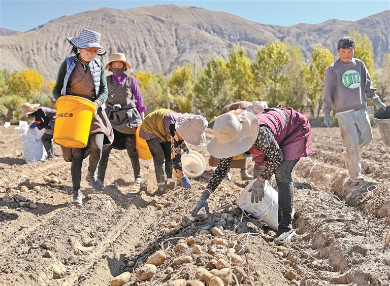 时下,南木林县迎来土豆丰收季,田间地头一派热火朝天的景象。据了解,今年南木林县土豆种植面积达4.82万亩,预计总产量12.64万吨,可带动群众增收2亿元。