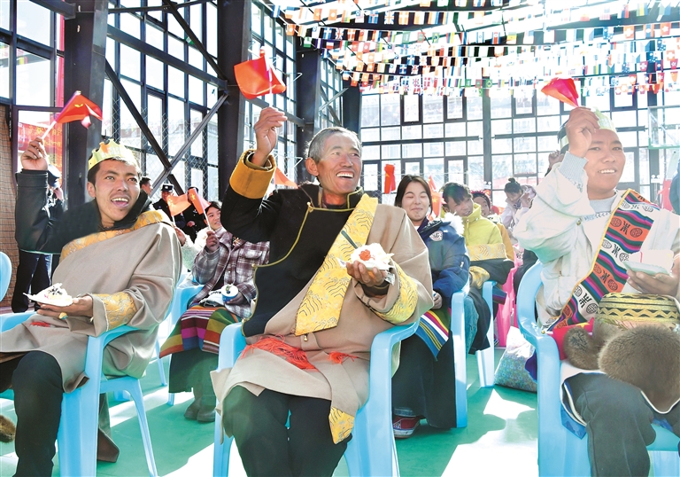 这一幕,发生在1月6日日喀则市定结县郭加乡政府礼堂里举行的“感恩奋进新居乐业,暖冬六送情满家园”活动现场。
