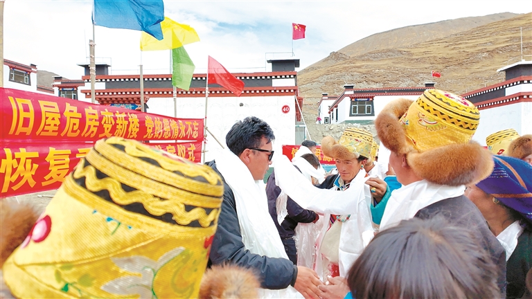 “哈达献给最亲的人,谢谢你们!真没想到,这辈子能住上这么好的房子。这是党的恩情,也是你们的功劳!”2025年10月底,日喀则市萨迦县拉洛乡塔村的灾后重建房屋全部竣工,村民欢天喜地搬进新居。入住当天,曾经反对搬迁的次旦手捧哈达献给包村干部和施工队队员,并充满感激地说。