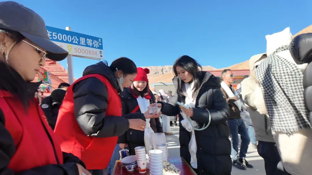 第一次来到西藏的游客罗文婷,特意带着儿子踏上高原之旅,恰逢春节与藏历新年,让这次旅途更添意义。在强公村,她不仅品尝了醇香的青稞酒、酸甜的酸奶奶棒、浓郁的甜茶等特色美食,还在祝福书写点认真写下了“藏汉一家亲”五个字。“这是我第一次来高原过春节,原本只是沿318国道自驾旅行,没想到能和当地乡亲们一起感受这么浓厚的年味。”乡亲们淳朴热情的笑容更让她倍感温暖,而“藏汉一家亲”,正是她此行最真实、最深刻的感受。