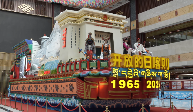 市民旦增江久在参观展览时激动地说:“看到曾在庆典上亮相的彩车,心情非常激动!彩车上展示的吉隆口岸、定日机场,还有飞驰的火车,都是我们日喀则快速发展的生动写照。”