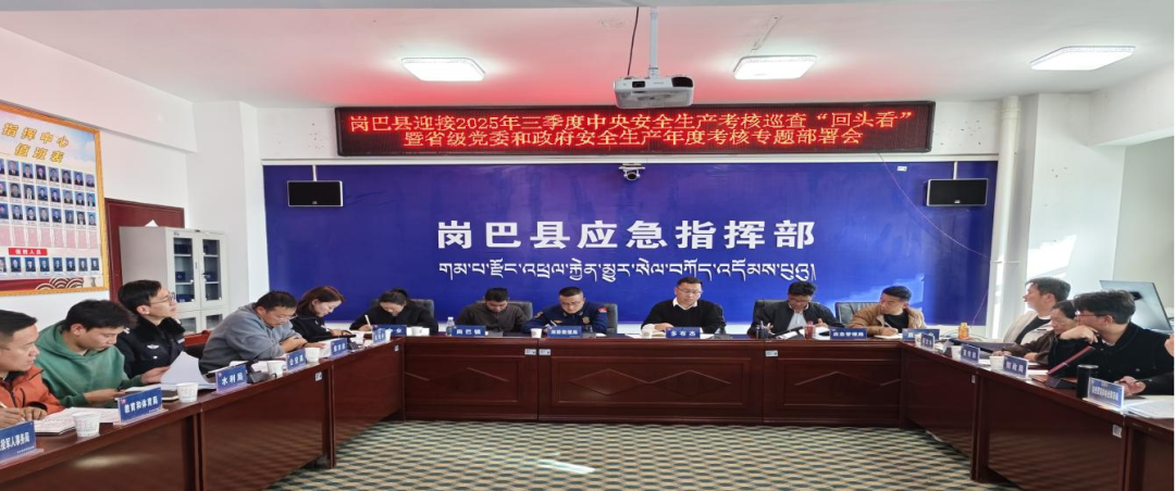 10月16日,岗巴县召开迎接2025年三季度中央安全生产考核巡查“回头看”暨省级党委和政府安全生产年度考核工作专题部署会,会议由县政府副县长多布杰主持并作发言,各乡镇、县安委会成员单位主要负责同志参加会议。