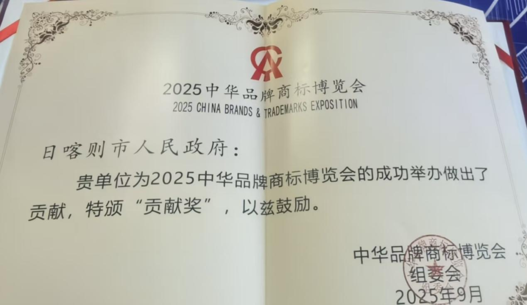 近日,第十五届中国国际商标品牌节在山西太原圆满落幕。日喀则市凭借在商标品牌培育、保护及服务地方经济发展中的突出成效,被授予“贡献奖”。