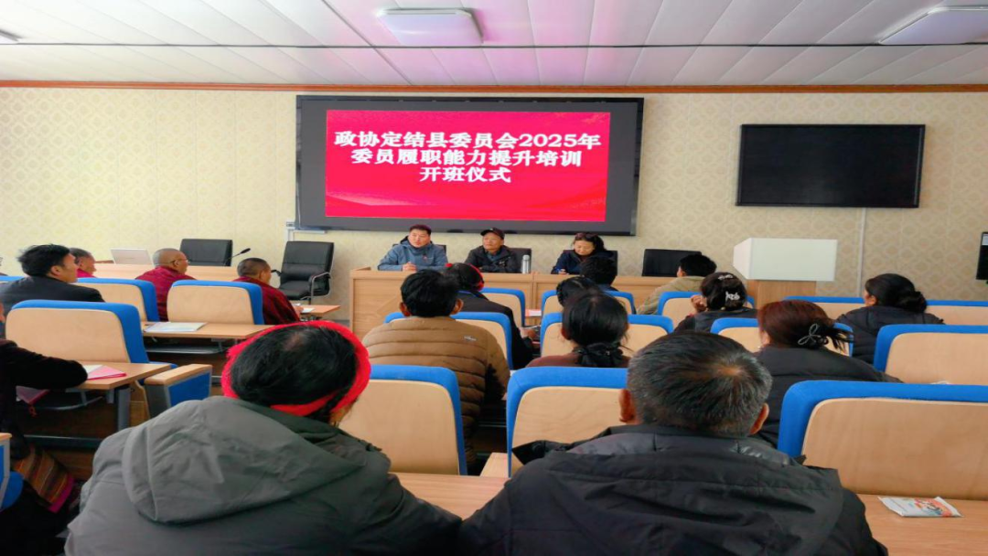 为进一步加强政协委员队伍建设,夯实委员履职基础,激发委员责任担当,近日,政协定结县委员会2025年度委员履职能力提升培训班在陈塘镇夏尔巴第一村正式开班。县政协党组成员、副主席次朗出席开班仪式并作动员讲话。本届政协委员及政协机关部分干部共计40人参加培训。