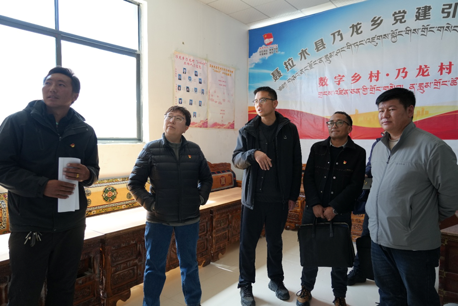 图为县委书记在聂拉木县乃龙乡调研“书记项目”数字乡村工作