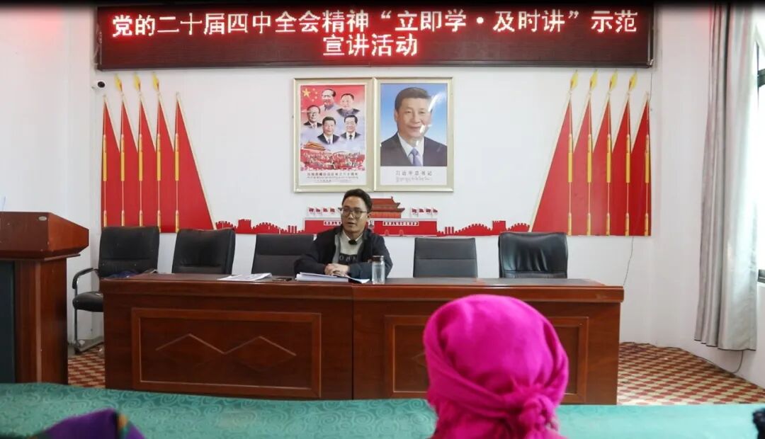 为推动党的二十届四中全会精神在基层落地生根、深入人心,11月4日,定结县组织开展党的二十届四中全会精神“立即学·及时讲”示范宣讲活动。自治区“十佳”基层宣讲员、定结县“同心”宣讲队队员达瓦次仁在多布扎乡聂孜村作示范宣讲,聂孜村村“两委”成员、群众参加活动。
