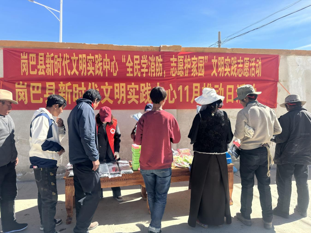 为切实筑牢辖区消防安全防线,提升全民消防安全意识,11 月 5 日“新时代文明实践推动日”当天,岗巴县宣传部(新时代文明实践中心)以 “全民学消防 志愿护家园” 为主题,到龙中乡查那村开展新时代文明实践志愿服务活动,用实际行动守护群众生命财产安全。