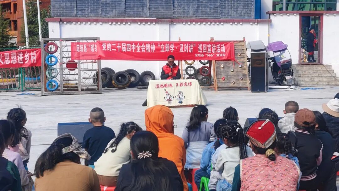 活动现场,自治区“十佳”基层宣讲员、定结县“同心”宣讲队员达瓦次仁用通俗易懂的语言、鲜活生动的案例,向陈塘镇群众解读党的二十届四中全会精神核心要义。宣讲紧密结合边疆群众生产生活变化,从医疗保障、乡村振兴、文化保护等群众关心的热点话题切入,用“家常话”讲清“大道理”,让全会精神真正走进基层、浸润人心,引导群众自觉把思想和行动统一到党中央决策部署上来,凝聚起共建美丽家园、守护边疆安宁的强大合力 。