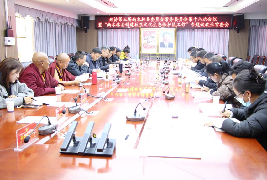 11月13日下午,政协第三届南木林县委员会常务委员会召开第十八次会议暨“南木林县创建孜东文化生态保护区工作”专题议政性常委会议。围绕创建孜东文化生态保护区工作协商议政、建言献策。会议由县政协党组成员、副主席,姜波主持,县政协党组书记、主席顿珠出席会议并讲话,县委常委、政府副县长刘润丛应邀出席会议并讲话,政协第三届南木林县委员会常务委员会委员、课题调研组成员、县政协办、县委宣传部、县文旅局、县人社局、县财政局负责同志参加会议,县政协委员代表,乡(镇)政协委员联络办主任列席会议。