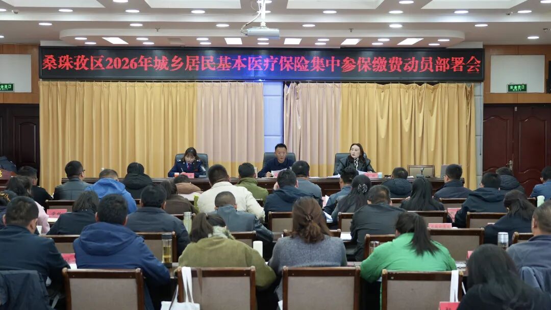 11月17日,桑珠孜区召开2026年城乡居民基本医疗保险集中参保缴费动员部署会,传达学习习近平总书记关于医疗保障工作的指示批示精神,通报2025年参保缴费情况,开展2026年参保缴费政策及业务培训,安排部署下步工作。区委副书记、政府区长巴桑旺堆出席会议并讲话。副区长白珍主持。