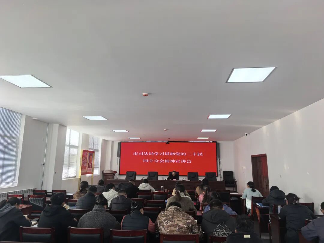 为深入学习贯彻党的二十届四中全会精神,统一全市司法行政系统干部职工思想行动,11月18日,日喀则市司法局召开专题宣讲会。局党组书记、副局长做了专题宣讲,局机关全体干部职工参加宣讲会。