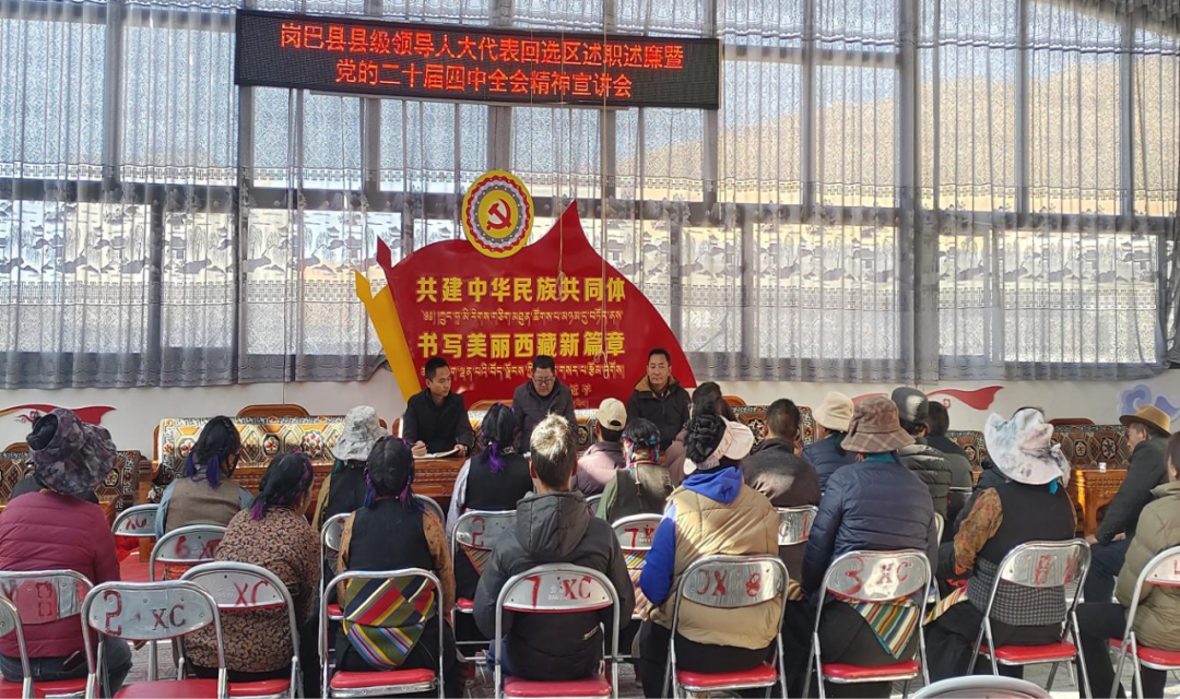 为深入学习贯彻党的二十届四中全会精神,更好推动党的最新政策“飞入寻常百姓之家”。近日,县委常委、纪委书记、监委主任谢延友深入岗巴镇雪村开展县级人大代表回选区述职述廉暨党的二十届四中全会精神宣讲会,以“声”传“神”担使命,全面开展党的二十届四中全会精神宣讲工作。述职述廉过程中,谢延友同志通过穿插大量鲜活案例和数据分析,把“大道理”转化为“家常话”,有效增强了述职述廉的吸引力、感染力和针对性,确保现场党员群众听得懂、记得住、用得上。同时,谢延友同志结合群众身边具体实事,向党员干部群众系统宣讲和深入阐释党的二十届四中全会精神,共同回顾“十四五”、展望“十五五”。谢延友同志讲到全会核心要义时要求,广大党员干部要示范带头学、带头讲、带头干,切实把全会精神转化为推动高质量发展的实际行动。