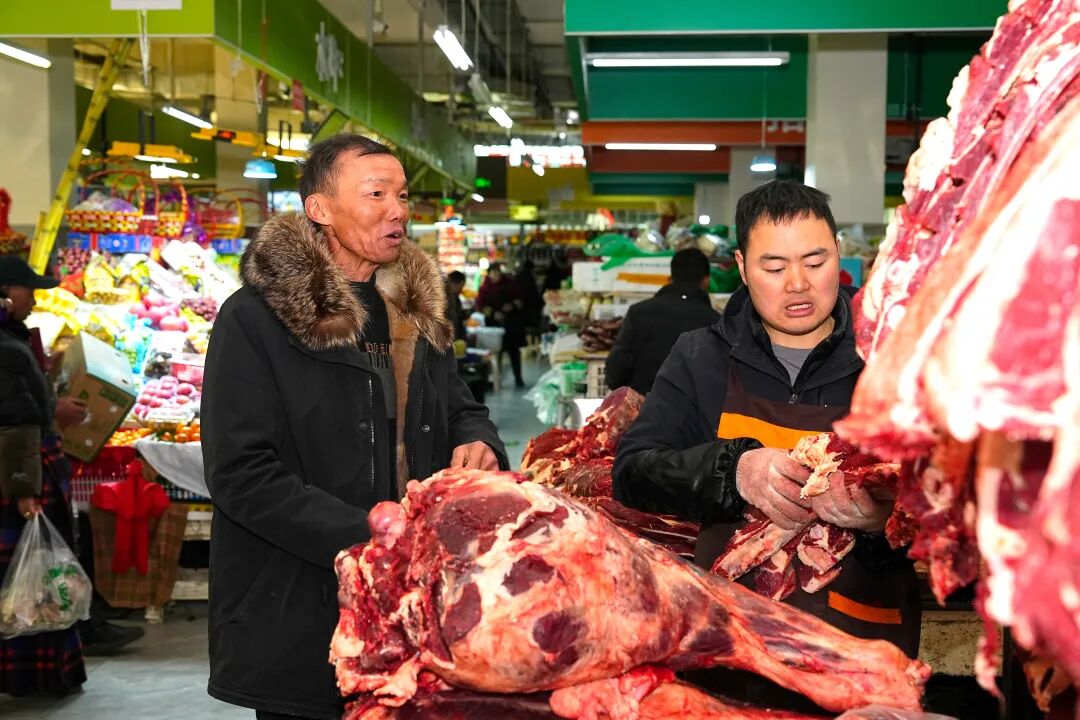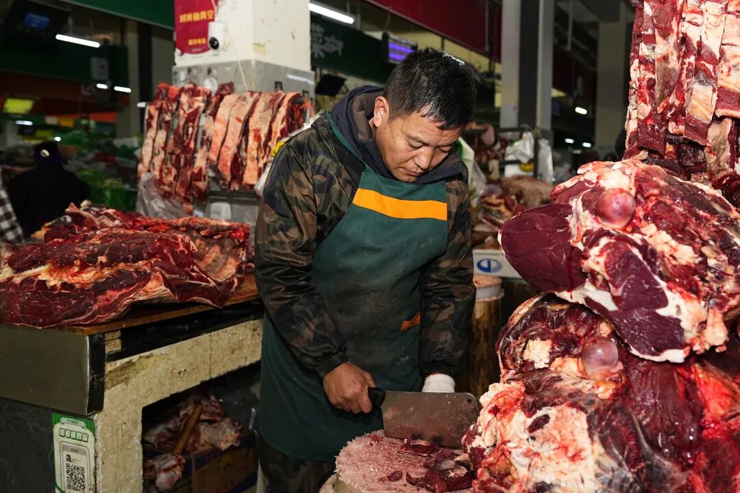 金龙农贸市场的牛肉摊主申老板也迎来销售高峰。“新鲜牦牛肉每斤40到45元,现在政府还在发消费券,买得多减得多,很划算!”她提到的正是近期我市推出的促消费政策——购买牛羊肉可享受“满200减30、满300减45、满400减60”等优惠,实实在在让利于民,也拉动了商户销量。