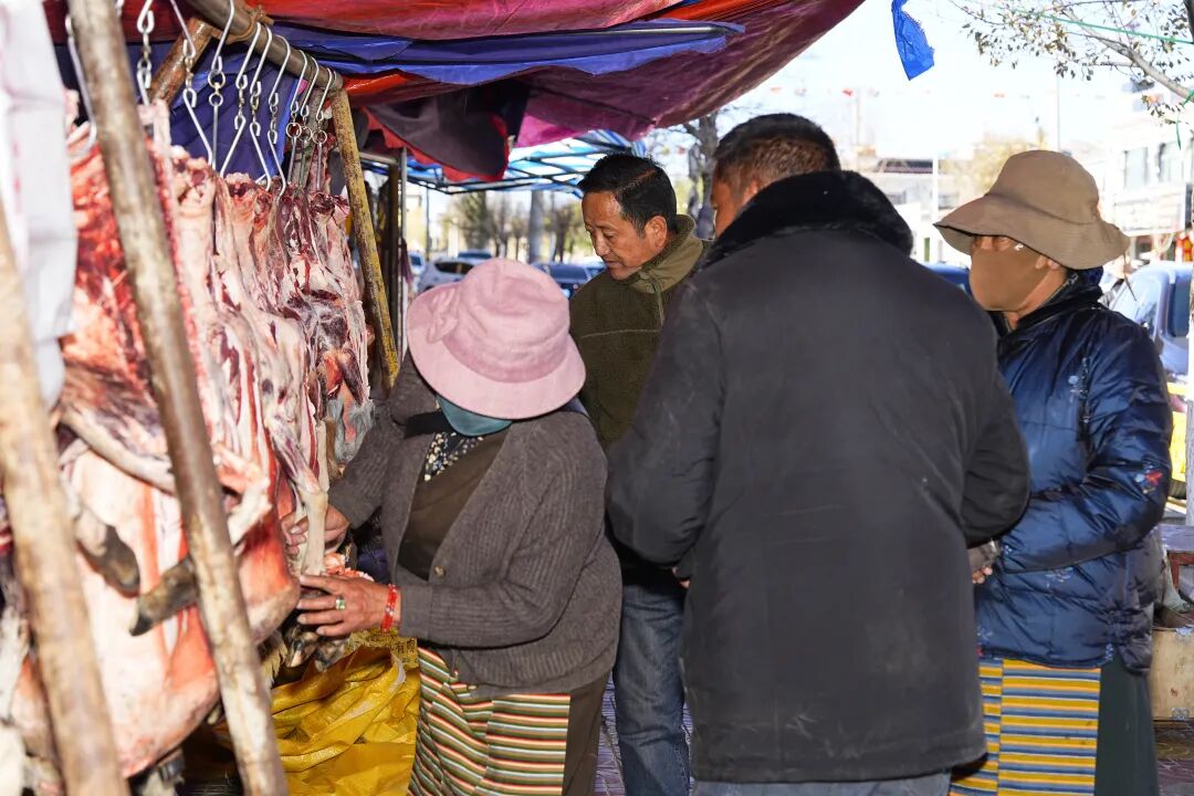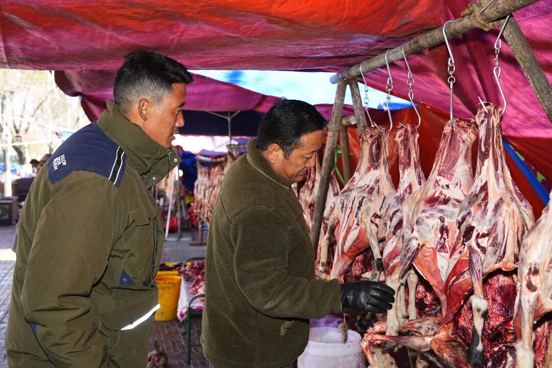随着岁末临近,寒意渐浓,日喀则的牛羊肉市场却格外“火热”!近日,记者实地走访几吉朗卡路、金龙农贸市场等地发现,各大牛羊肉摊位前人头攒动,来自我市各县区以及拉萨、昌都、那曲甚至青海的商户齐聚于此,新鲜牛羊肉、特色风干牛肉琳琅满目,叫卖声、询价声络绎不绝,呈现出一派红红火火的供销景象。