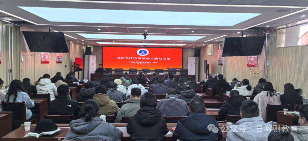 为深入学习贯彻习近平法治思想,全面提升教育系统干部职工法治素养和依法履职能力,推动依法治教、依法治校工作走深走实,2025年12月2日,日喀则市教育局结合“12·4”宪法宣传教育工作实际,组织开展了法治专题讲座,邀请局法律顾问、市律师协会会长汤杰同志授课,局机关在家班子成员、全体干部职工、局直属学校负责人及法治工作骨干共80余人参加。