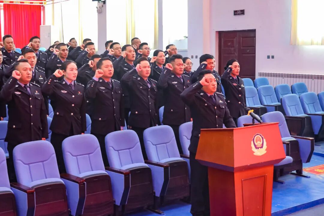 宣誓完毕后,全体人员共同观看了宪法宣传视频,马立保同志从始终牢记“公安姓党”的根本属性、始终坚守执法公正的核心价值、不断推进更高水平法治建设三个方面进行了强调。