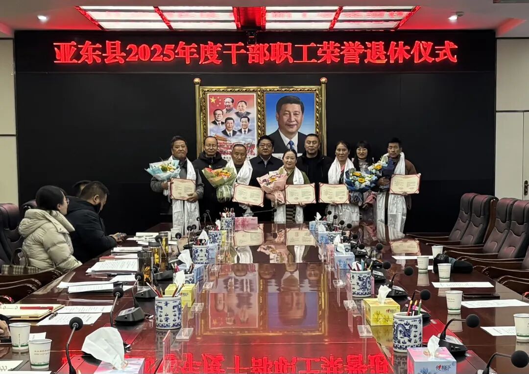 12月9日,亚东县举行2025年度干部职工荣誉退休仪式,县委书记扎西次仁出席仪式并讲话。