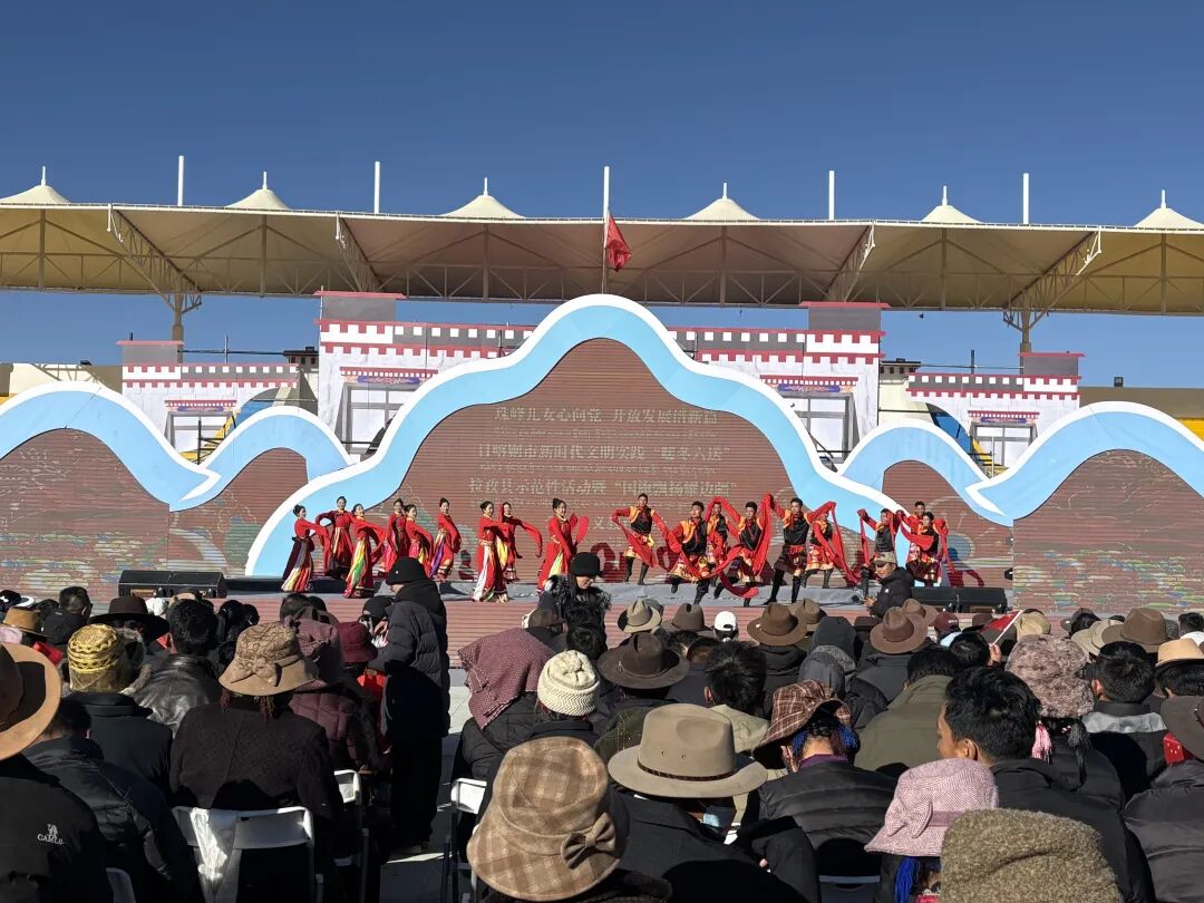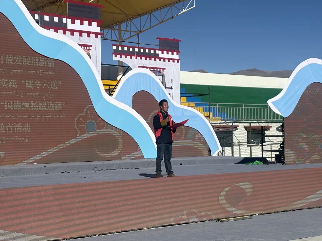 冬日的拉孜县西部体育场暖意融融。12月11日上午,伴随着开场舞《再唱山歌给党听》,“珠峰儿女心向党 开放发展谱新篇”日喀则市新时代文明实践“暖冬六送”示范性活动暨“国旗飘扬耀边疆”爱国主义教育活动在此隆重举行。理论宣讲、文艺表演、便民服务等多元形式,为边疆群众送上冬日里的温暖与关怀。