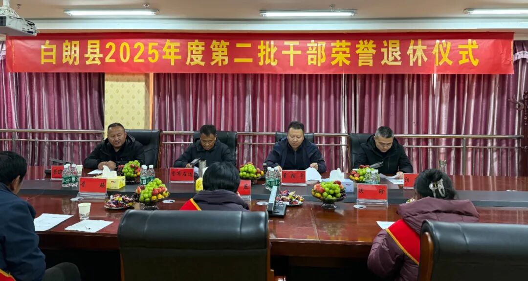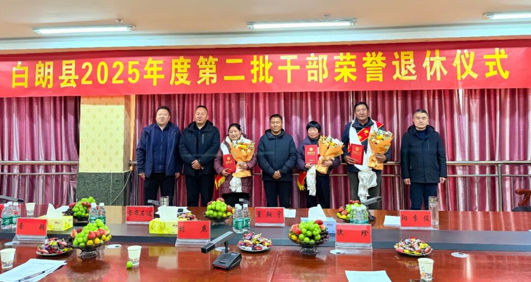 12月22日,白朗县举办2025年第二批干部荣誉退休仪式。县委书记普布石达出席并讲话,县委副书记董翔宇主持,县委副书记、政法委书记、县公安局局长普琼次仁,县委常委、组织部部长、党校校长阳李俊参加。