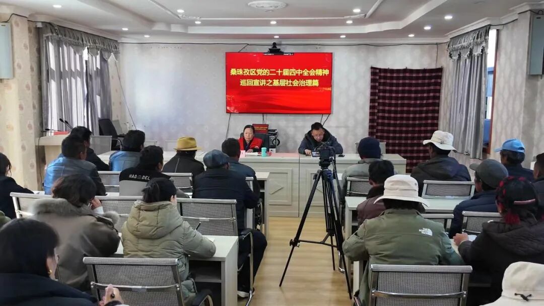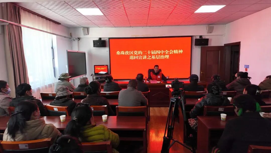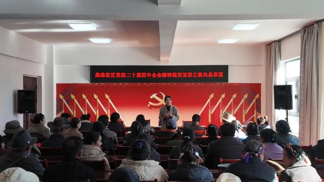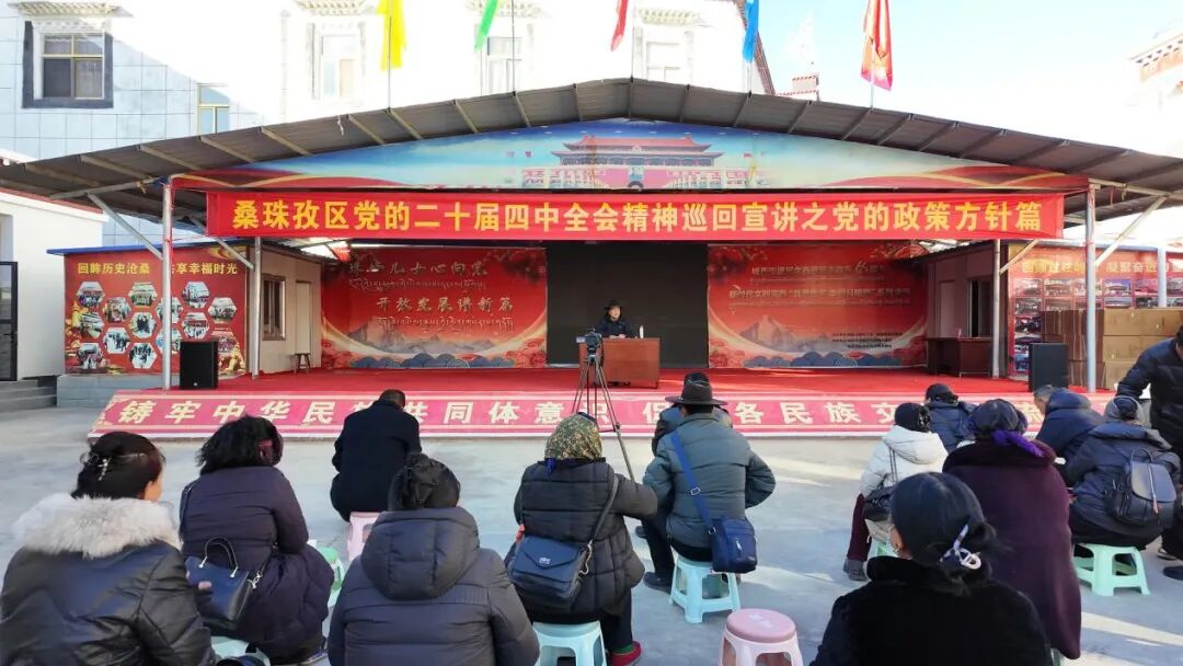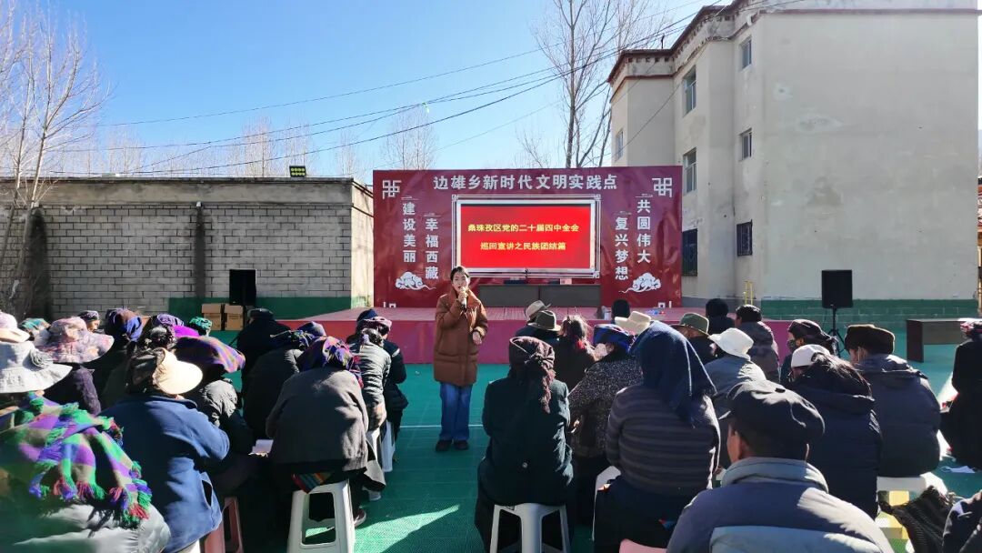 为深入学习宣传贯彻党的二十届四中全会精神,根据《关于在全市开展党的二十届四中全会精神宣讲工作的通知》要求,按照桑珠孜区委统一安排部署,桑珠孜区邀请拉萨市、江孜县、岗巴县、白朗县、康马县等兄弟市县优秀基层宣讲员,组织辖区优秀基层宣讲员,根据各乡(街道)宣讲工作的需求制定宣讲计划,开展对象化、分众化、互动化宣讲活动。11月19日至12月23日,桑珠孜区新时代文明实践中心组织开展党的二十届四中全会精神巡回宣讲活动。