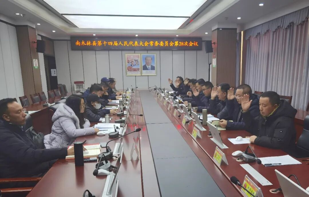 12月27日,南木林县第十四届人民代表大会常务委员会第二十八次会议召开。会议应到常委会组成人员18人,实到12人,符合法定人数。县人大常委会主任翁爱忠主持会议,县人大常委会副主任彭华、次仁出席会议。县人民政府副县长(人选)戚星,县人民检察院检察长何文,县监察委员会,县人民法院的有关同志,不是县十四届人大常委会组成人员的县人大常委会办公室和有关专门委员会的同志,县政府办、财政局、生态环境分局、统计局等议题有关的部门负责同志。