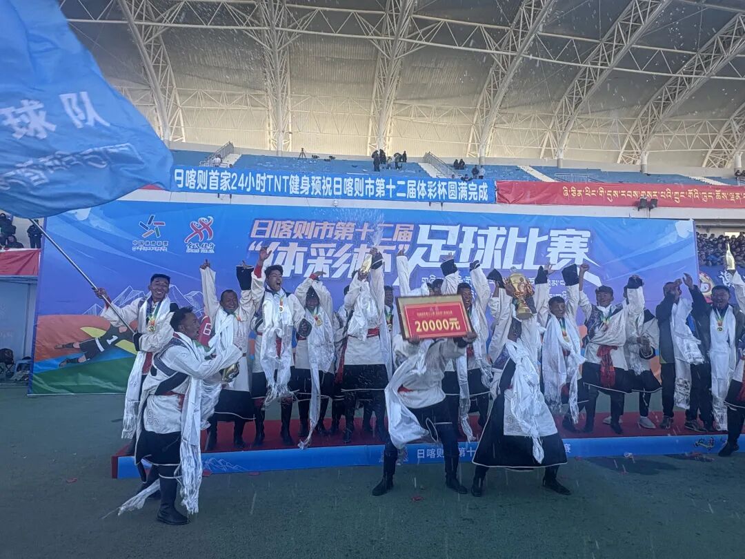 12月27日下午,日喀则市第十二届“体彩杯”足球赛在热烈氛围中圆满结束。经过20多天的激烈角逐,谢通门县代表队在决赛中通过点球大战战胜市直机关联队,成功夺得本届赛事冠军。