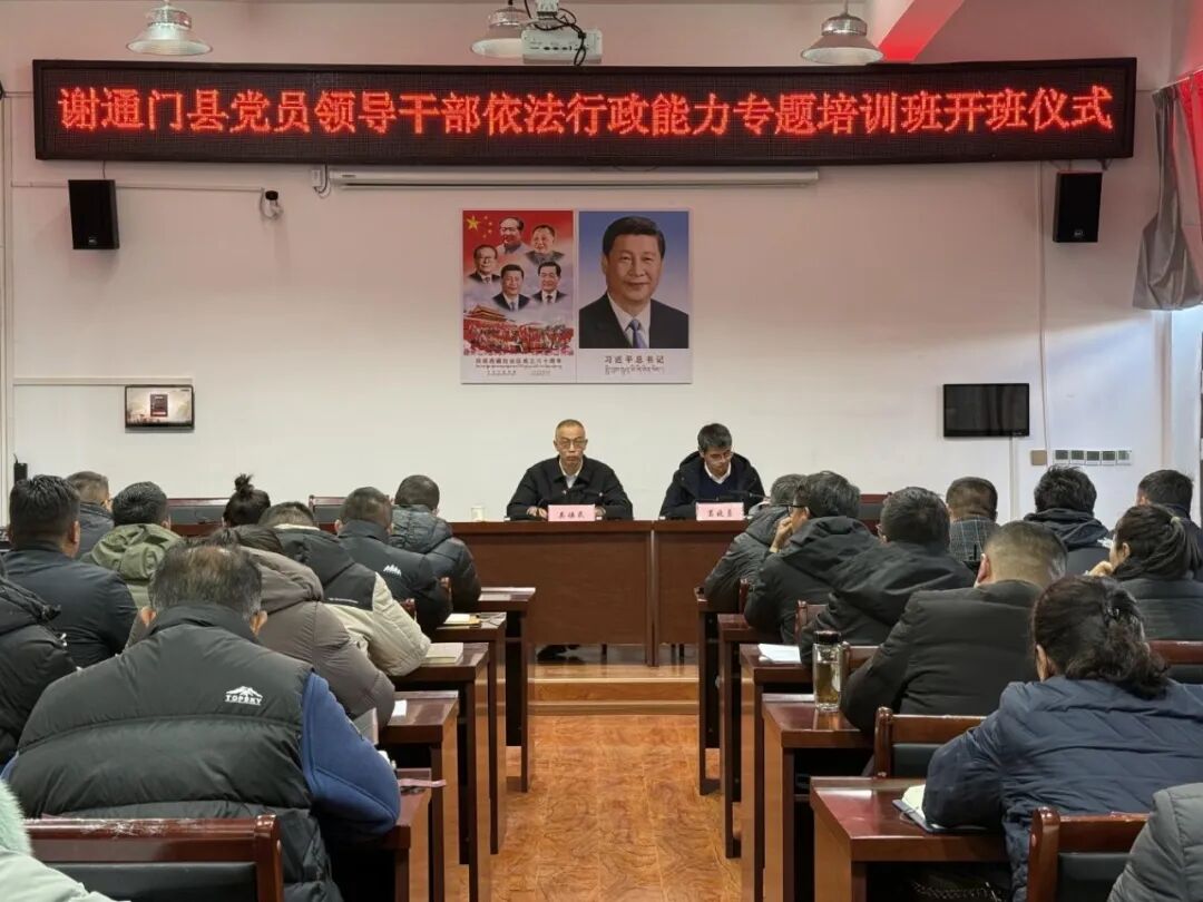 12月26日,谢通门县党员领导干部依法行政能力专题培训班正式开班。县委常委、组织部部长、党校校长葛晓勇主持,县委书记吴焕民出席并讲话。吴焕民强调,要深入学习贯彻习近平法治思想,着力提升领导干部运用法治思维和法治方式开展工作、解决问题、推动发展的能力,为推动谢通门长治久安和高质量发展提供坚实法治保障。
