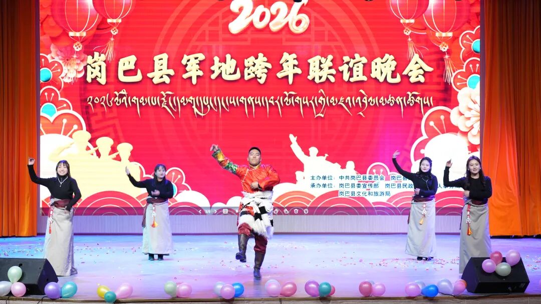 政府副县长珍央在晚会上致辞,她提到过去一年,岗巴县经济社会各项事业取得显著成效,这离不开驻地部队官兵的无私奉献和大力支持。长期以来,驻岗部队始终牢记使命、扎根边疆,在守边固防、助力乡村振兴等方面作出了突出贡献,用实际行动诠释了军民一家亲的深厚情谊,2026年是“十五五”规划的开局之年,也是岗巴县推动高质量发展的关键之年,希望军地双方继续发扬拥军优属、拥政爱民的优良传统,持续巩固和发展同呼吸、共命运、心连心的新型军政军民关系,共同为建设团结富裕文明和谐美丽的社会主义现代化新岗巴而努力奋斗。