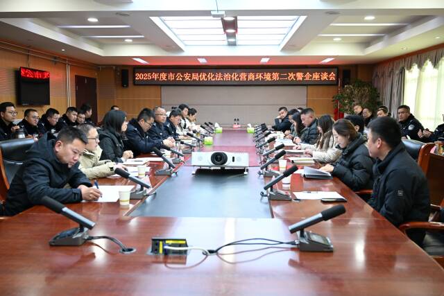会议通报了市公安局上半年警企座谈会意见落实情况和全年优化法治化营商环境工作开展情况;各企业代表、各单位结合实际,发表了对公安机关优化法治化营商环境工作意见建议,局属相关部门进行了答复。