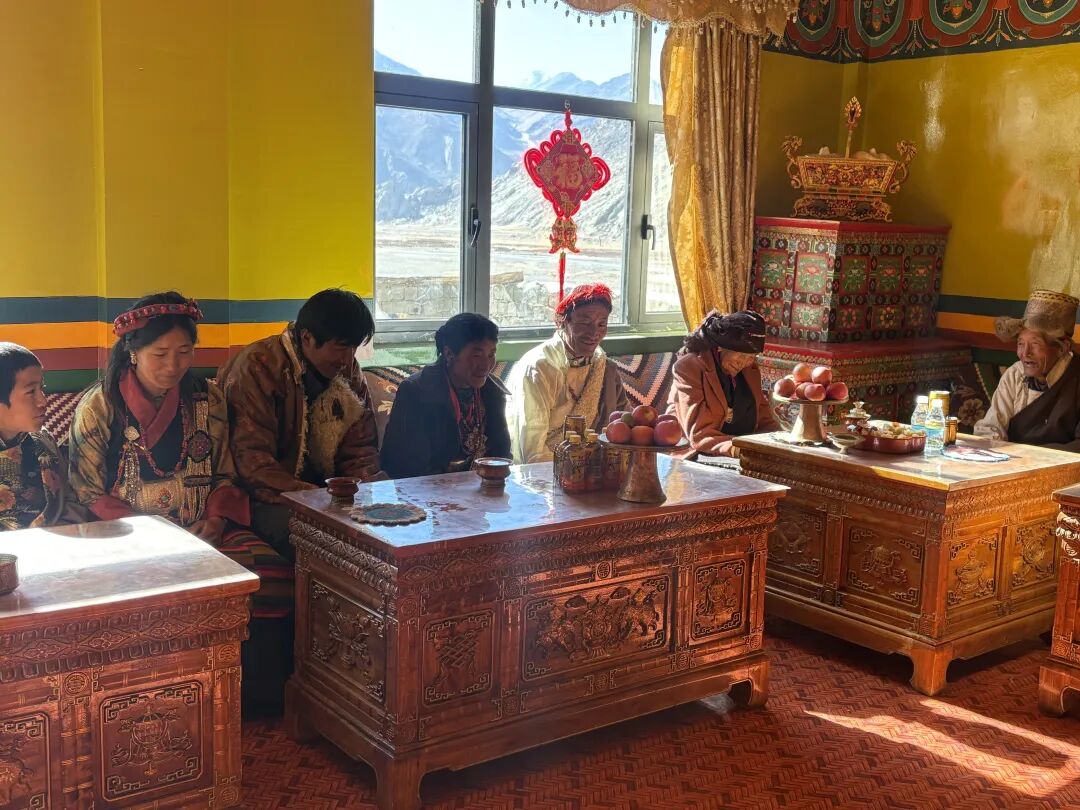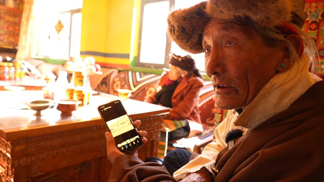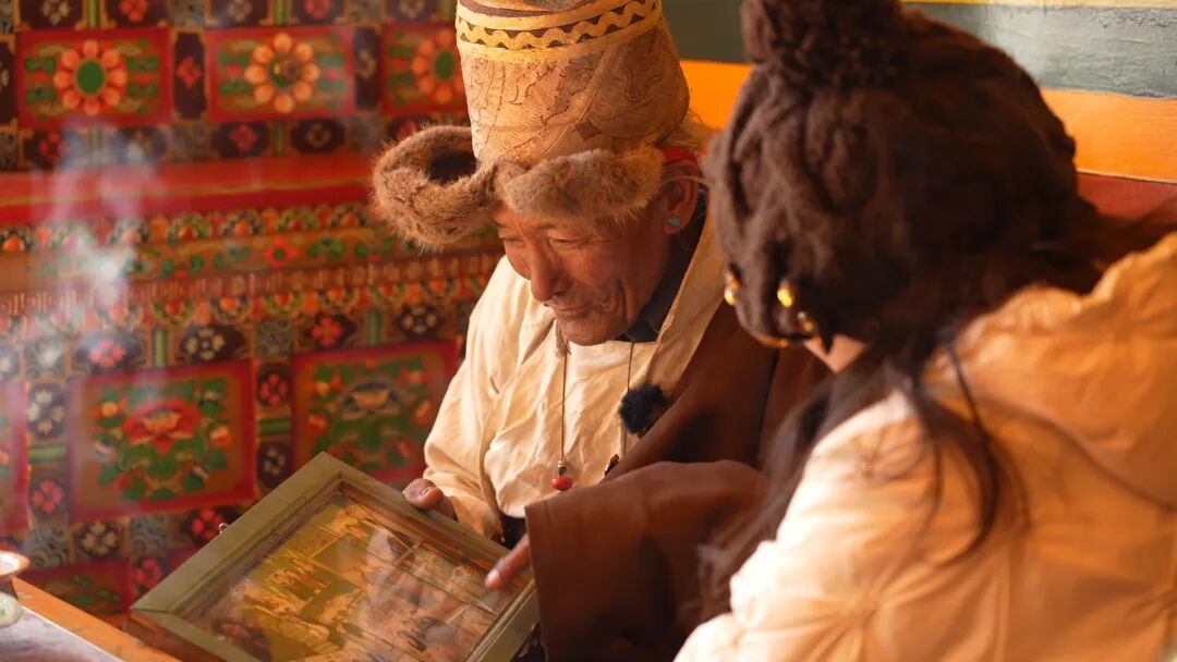 不一会儿,甜茶满屋飘香,孩子们说着悄悄话,长辈们拉着家常,念叨着年货还差些什么、新年要给小辈准备什么礼物,年前茶话会温馨开启。小重孙旦增平措小心地端起茶碗,先给多布杰敬上第一杯甜茶,眼神里满是敬重。多布杰捧着温热的茶碗,又拿起手边的老相框细细端详,笑吟吟地介绍:“我们这一大家子,足足13口人,六对夫妇,四世同堂,在一起热闹踏实!这张照片在布达拉宫拍的……现在生活条件好了,交通也便利,孩子们趁我们还能走动,带我去了不少地方。”话语间,他的目光时不时落在儿孙们身上,眼角眉梢都漾着藏不住的笑意,那是阖家团圆的满满幸福与满足。