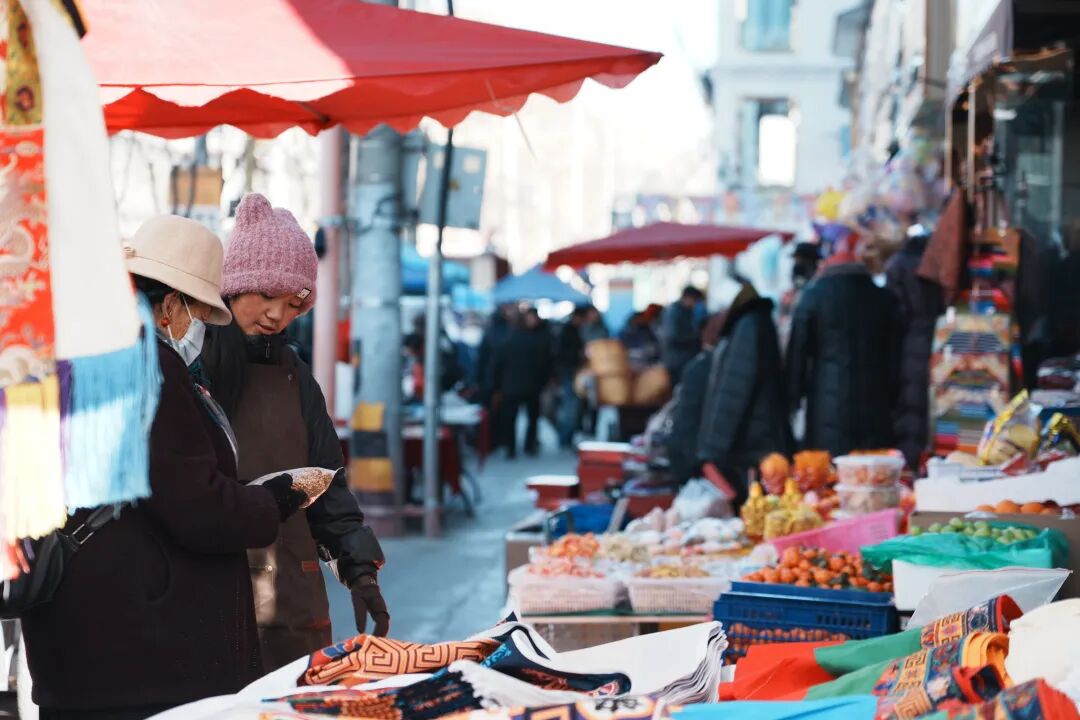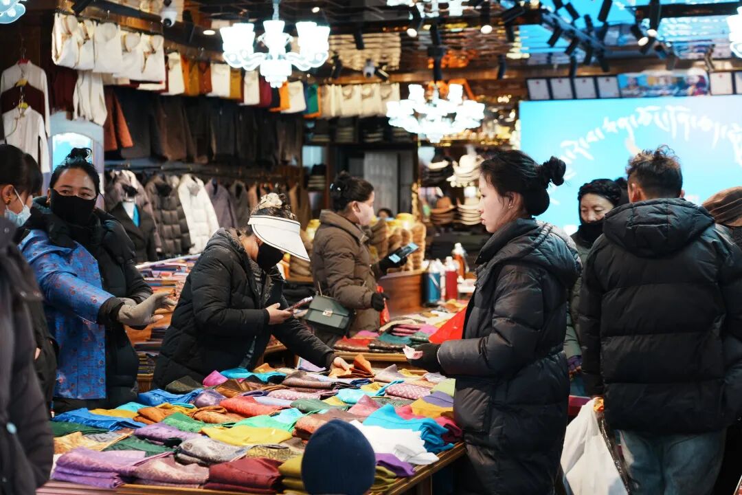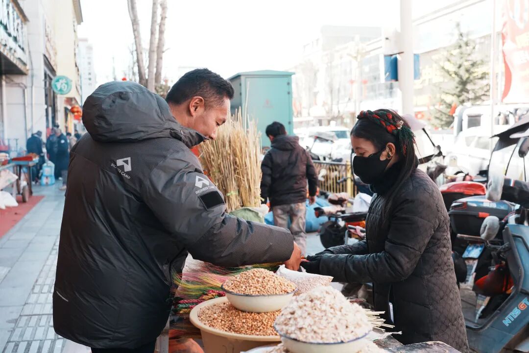德卡、牛肉干、卡塞、奶渣……各式年货琳琅满目,承载着记忆与味道。人们手中提满丰盈的收获,笑容自眼底漫开,问候与欢笑汇成了节前最动人的交响。