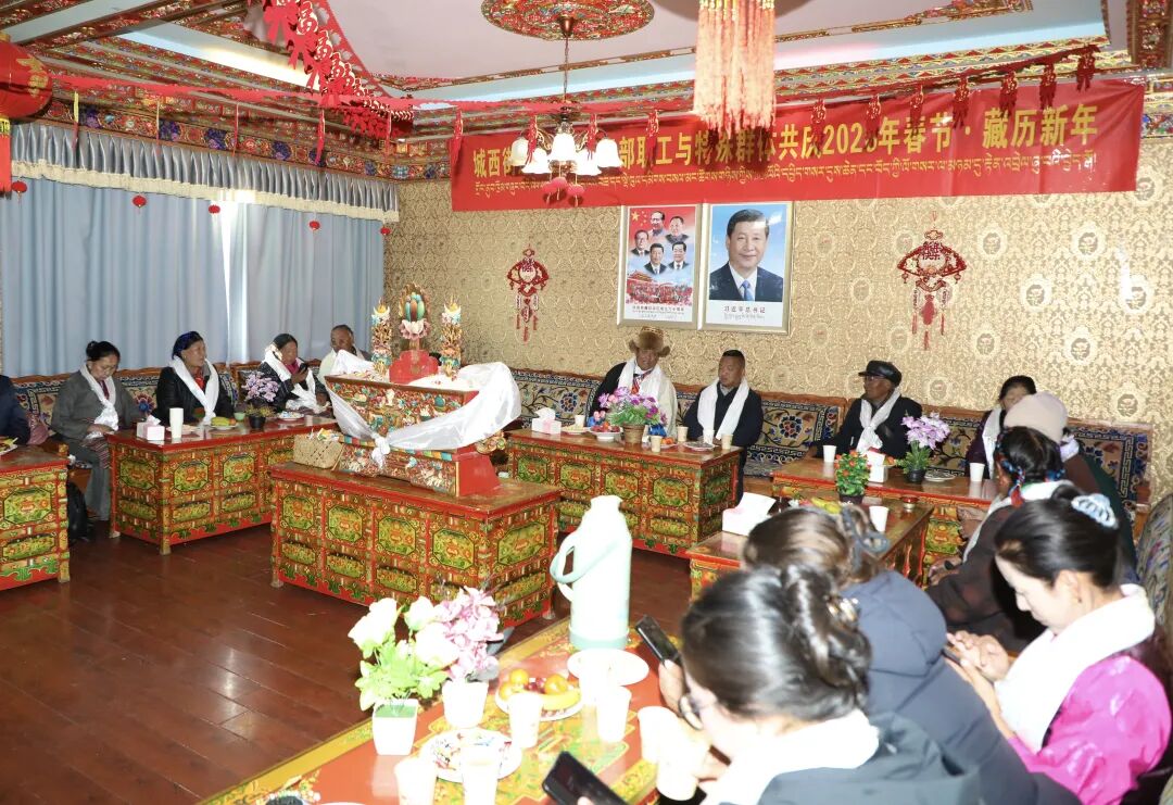 金蛇辞旧岁,骏马迎新春。在2026年春节与藏历新年双节之际,为切实把党和政府的关怀温暖送到特殊群众心坎上,营造喜庆祥和、民族团结的浓厚节日氛围,2月18日,城西街道德勒社区组织干部职工与辖区低保对象、残疾人、独居老人、困境儿童等特殊群体欢聚一堂,共同开展节日联谊活动。社区干部职工12人、辖区特殊群体代表15人参加活动。