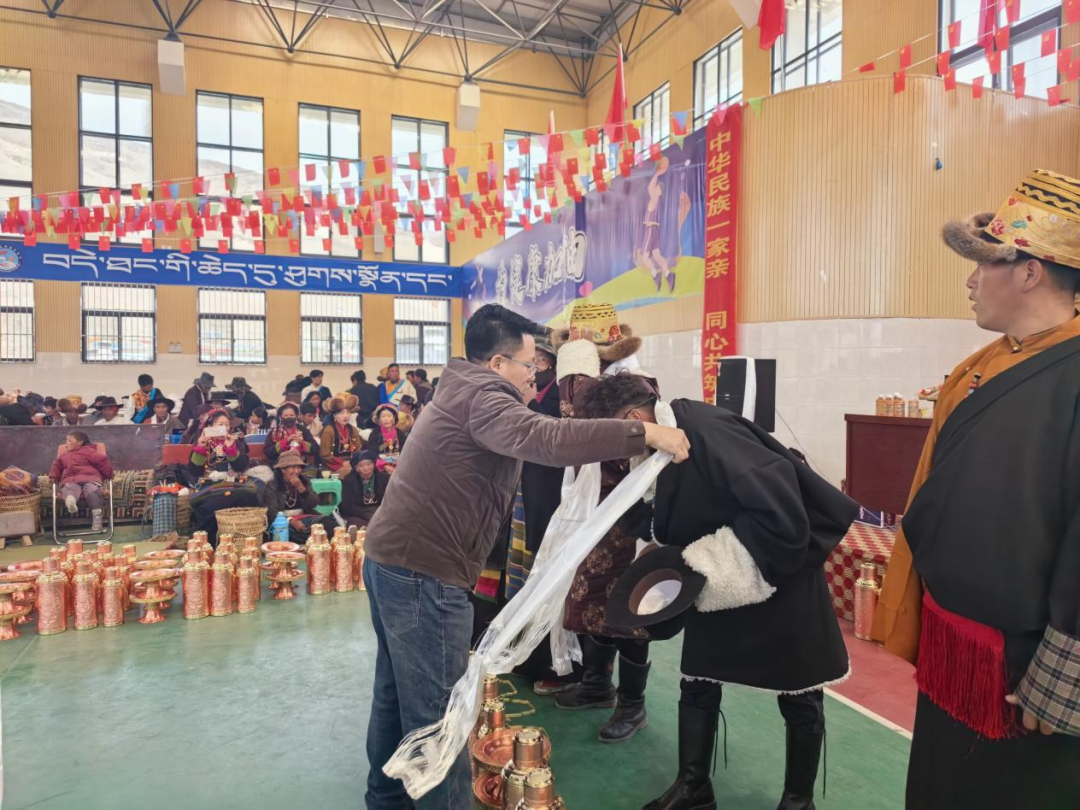 乡党委书记旺堆为合作社股民代表献上洁白的哈达,他在总结讲话中提出,扎西岗村党组织要充分发挥“头雁”作用,在党的大好政策扶持下,继续抓好合作社各项工作,发展壮大村集体经济,切实让群众享受到村集体经济带来的更大红利,不断提升群众的获得感、幸福感、安全感。