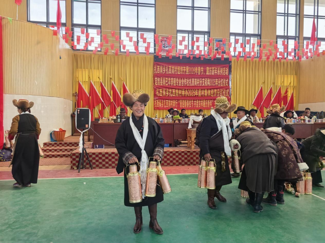 产业分红,促振兴。仪式上,村党支部书记、合作社理事次旺向到场人员总结报告了2025年度合作社及村集体经济运营状况和收支流水、效益成果等,并提出2026年运营工作计划和要求。他表示,今年仍将不负村党组织和全体村民的信任,凝聚发展合力,规范运营、务实履职,推动合作社稳步发展,让全体村民共享发展成果。