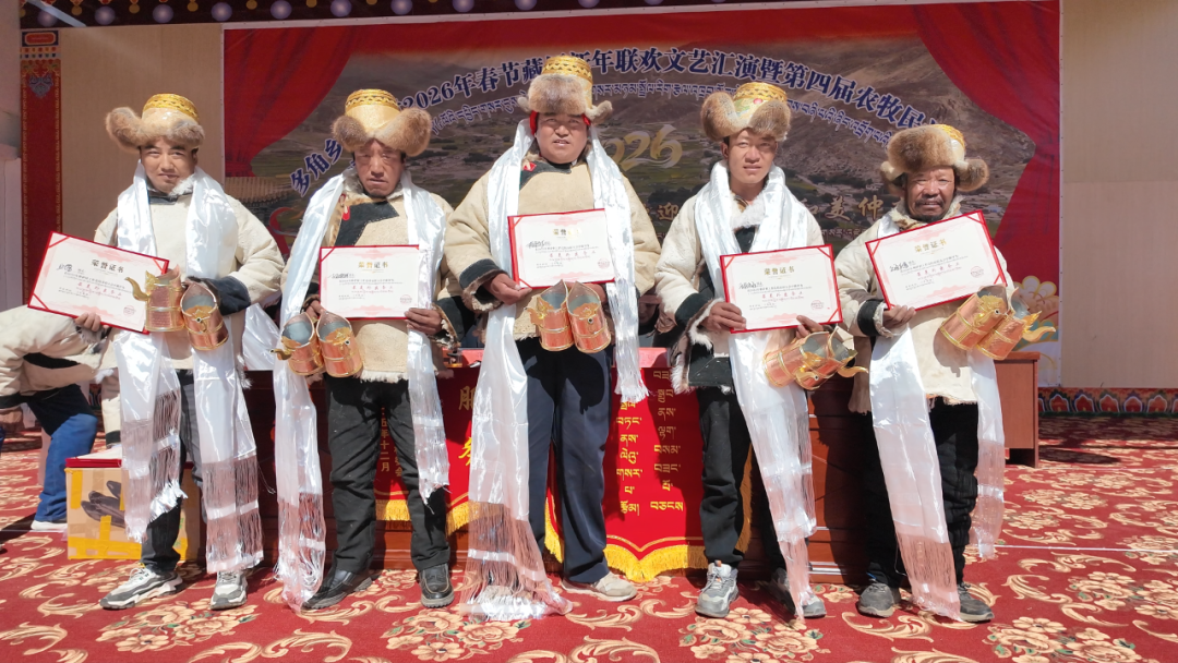 活动现场表彰最美婆婆、最美媳妇、最具孝心家庭、土豆经纪人等先进个人及家庭共 35 名,为获奖者发放藏式铜制青稞杯等物资及奖金,累计发放奖金 10500 元。日喀则市文化和旅游局驻村工作队、村致富带头人同步慰问全村107户,发放大米、面粉、青稞杯等物资,慰问资金合计5.5万元。