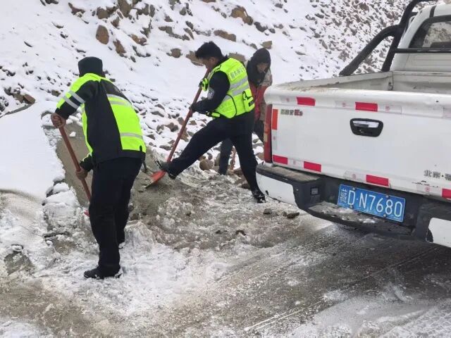 面对降雪降温天气,全体民(辅)警以雪为令、闻雪而动,第一时间开展清雪除冰作业,对易积雪、易结冰路段及时清理处置,增设安全警示提示,加强巡逻管控与现场疏导,全力保障道路通行条件,帮助受困车辆安全脱困,用实际行动温暖风雪归途。
