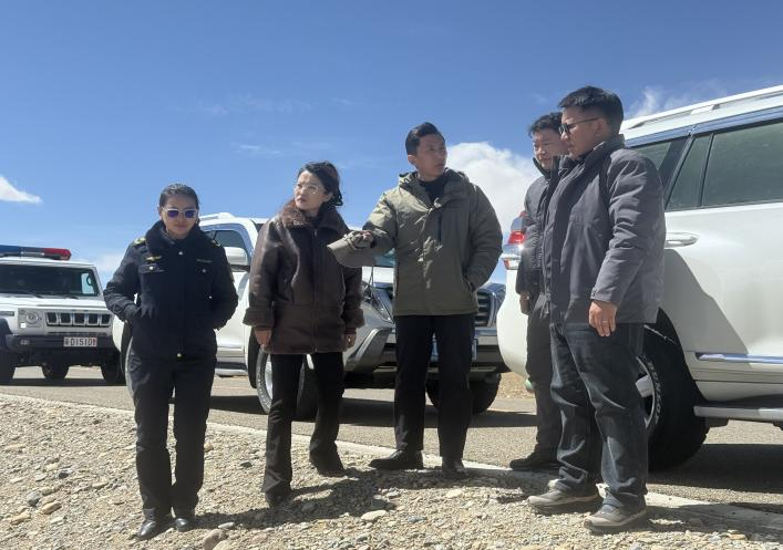 首先,督导组在曲登尼玛警务站详细听取了关于当前冰川整改总体进展、游客日常管控等情况,同时重点了解整改措施的落实成效、存在的困难堵点以及下一步工作安排。随后,深入冰川管控一线,对照《岗巴县贯彻落实自治区第二轮生态环境保护督察反馈问题整改方案》内容,实地查看了第二道升降杆设置、警示标识安装、智能预警系统运行及点位选址等情况,并对正在推进的各项整改收尾工作进行现场再指导、再部署。