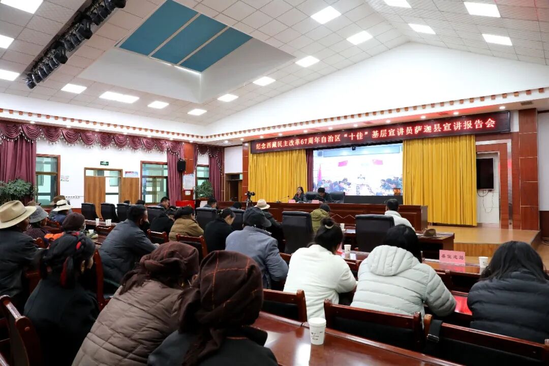 3月26日,萨迦县举办纪念西藏民主改革67周年宣讲报告会,邀请自治区“十佳”基层宣讲员次仁松确作宣讲报告,县传承中心设主会场,各乡(镇)以视频会议形式同步参会。全县自治区基层宣讲员、村“两委”、新时代文明实践所理论宣讲员、农牧民群众代表等285人参加会议。