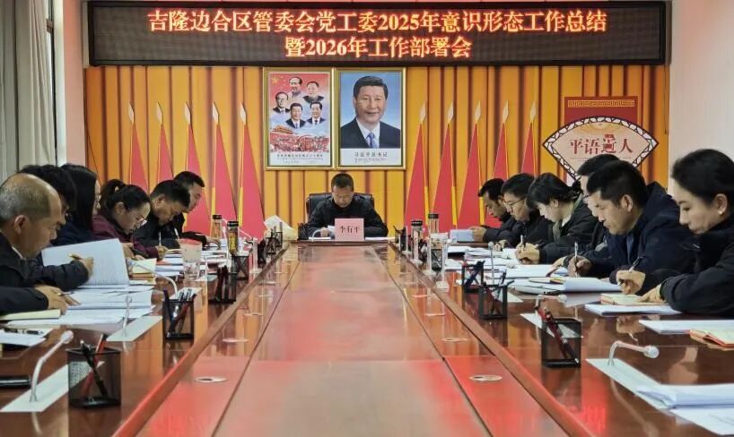 近日,吉隆边合区管委会党工委召开2025年度意识形态工作总结暨2026年工作部署会议。县委书记、边合区党工委书记李有平主持会议并讲话,在家班子成员、全体干部职工参加会议。